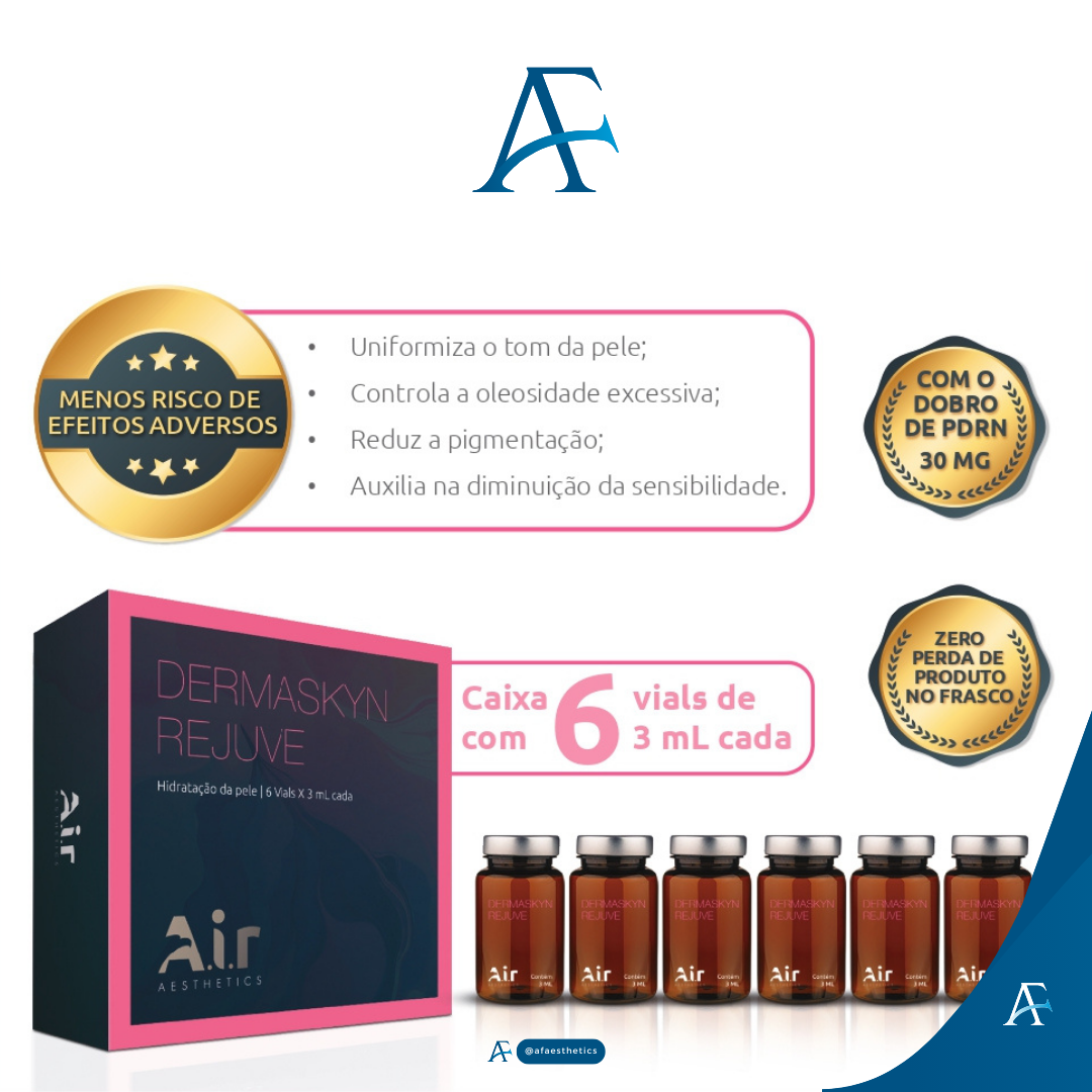 Por meio da combinação do PDRN, ácido Hialurônico e glutationa, Dermaskyn Rejuve age na regeneração intraacelular e tecidual, estimulando a migração e o crescimento das células, a produção de matriz extracelular e a redução do processo inflamatório, que estão diretamente relacionados com o processo de envelhecimento, melhorando a qualidade de pele.